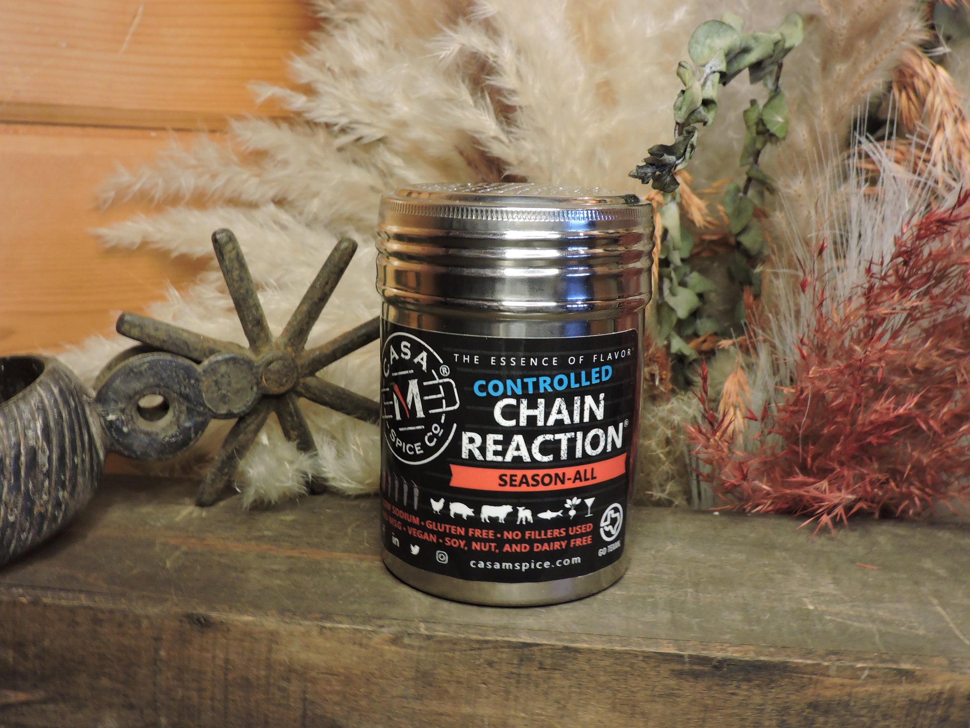 Chain Reaction: Truly a season-ALL. Made with all-natural ingredients including paprika, salt, pepper, garlic, onion, spices, and ground chiles, this seasoning starts with a smoky flavor followed by earthy and bright flavors before a lingering and building heat from our unique mix of chiles. It pairs wonderfully with everything from meats and beans to fruits and vegetables to eggs.