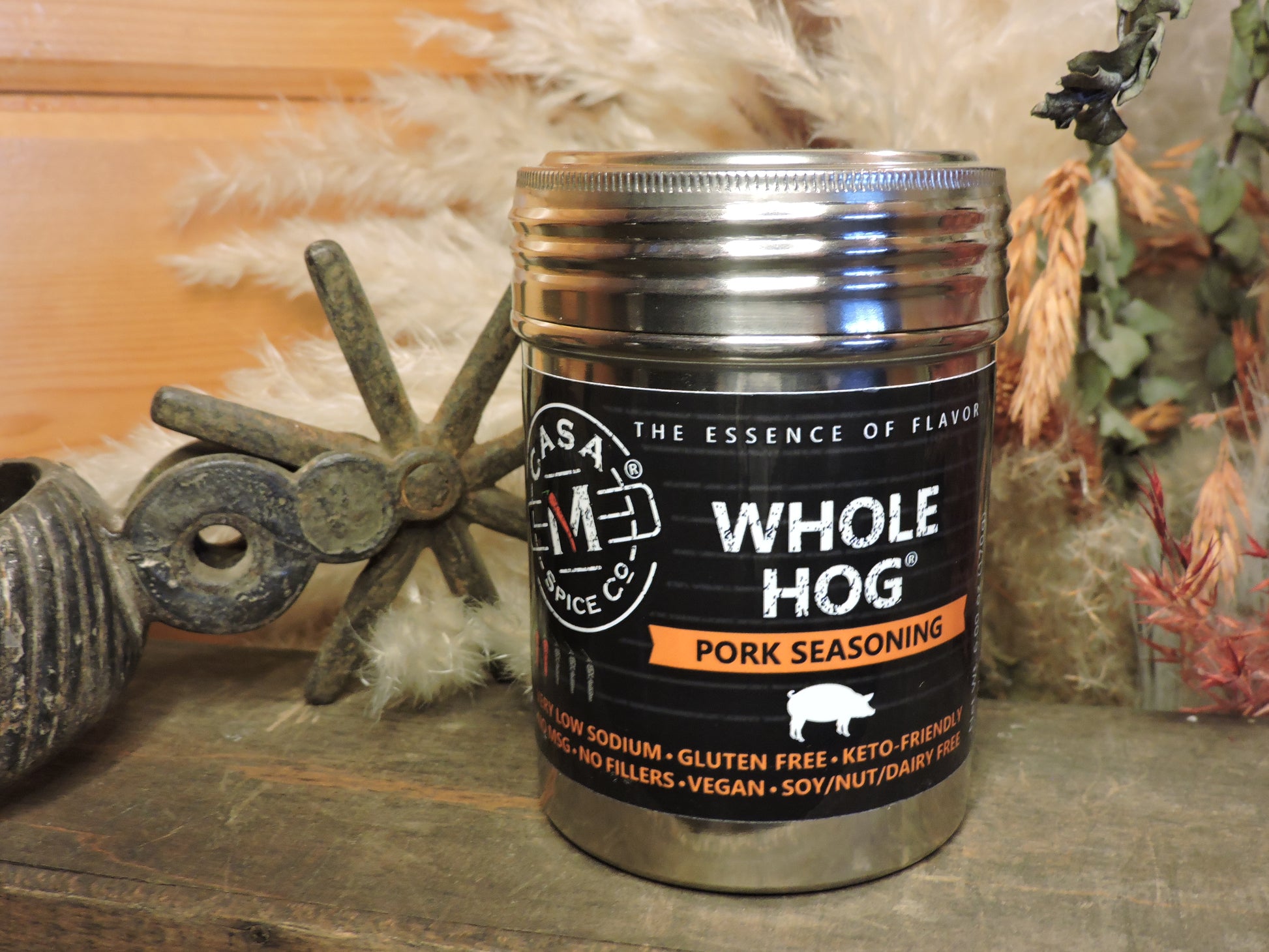 Whole Hog: From pork shoulder and ribs to chops and tenderloin, Casa M Spice Co® gives you the perfect rub for smoking, no matter which cut of pork you are preparing. A blend of a little sugar, brown sugar, ginger, and other spices to complement the innate flavors in pork. The secret to this spice is a sweet herbal heat from ginger which pairs beautifully with heat from the chiles.